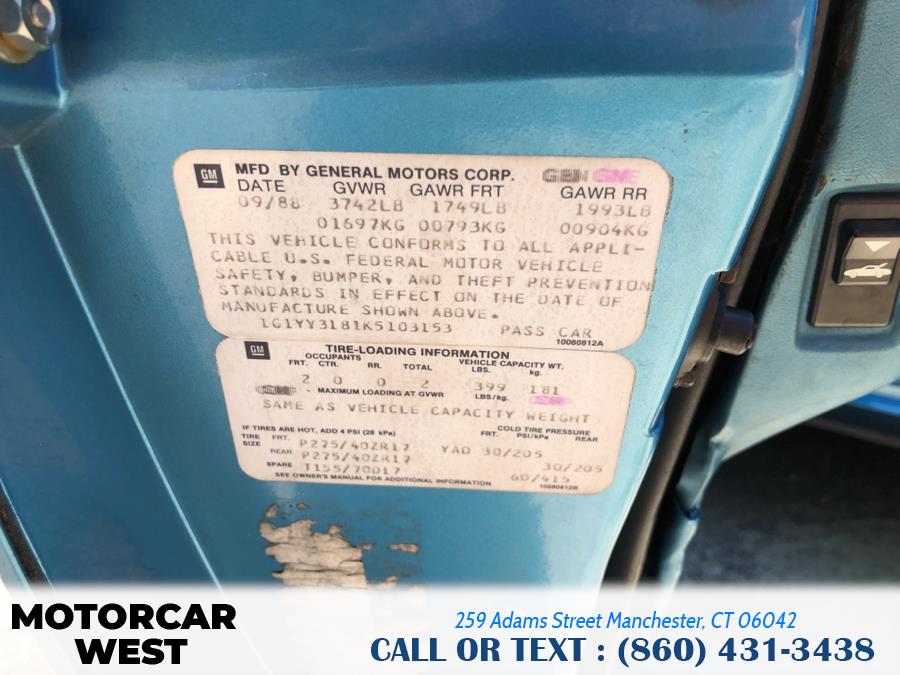 Pictures of used 1989 Chevrolet Corvette 2dr Convertible in Manchester, CT