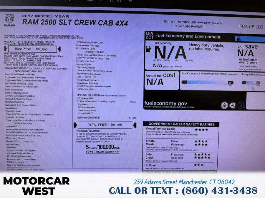 2017 Ram 2500 SLT 4x4 Crew Cab 6''4" Box, available for sale in Manchester, Connecticut | Motorcar West. Manchester, Connecticut